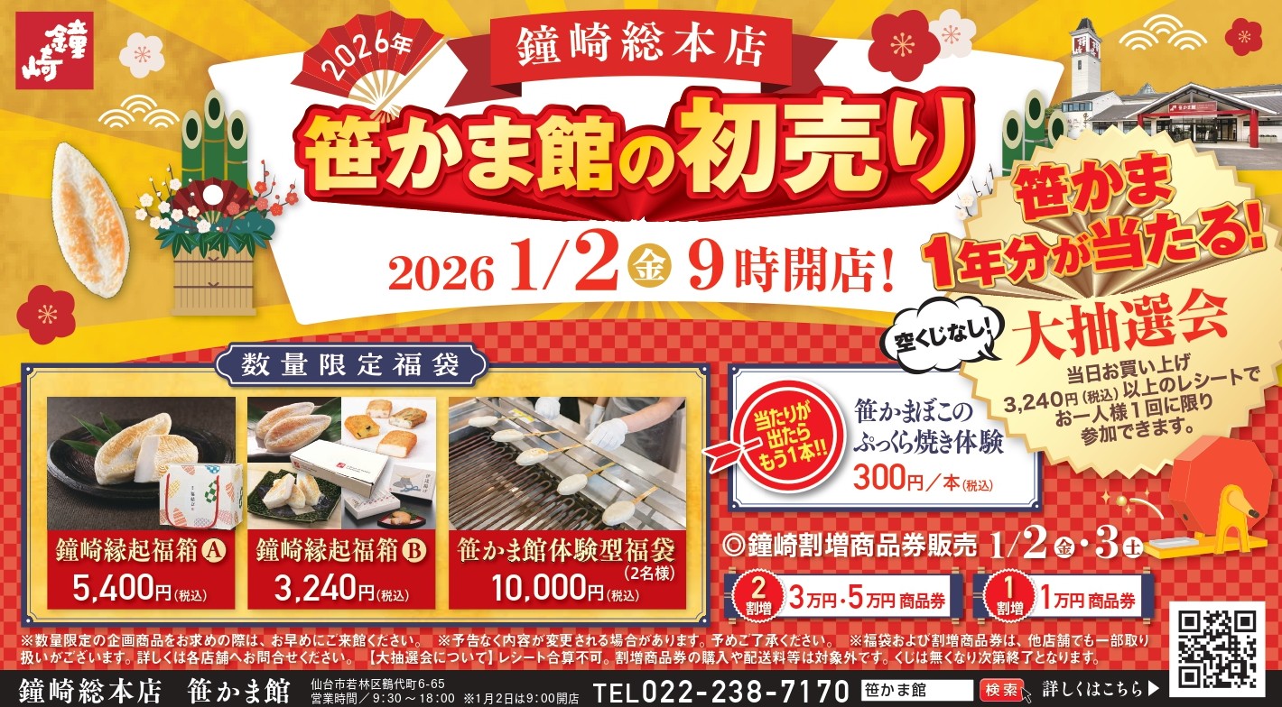 『2026年 鐘崎総本店 笹かま館の初売り』についてお知らせさせていただきます。