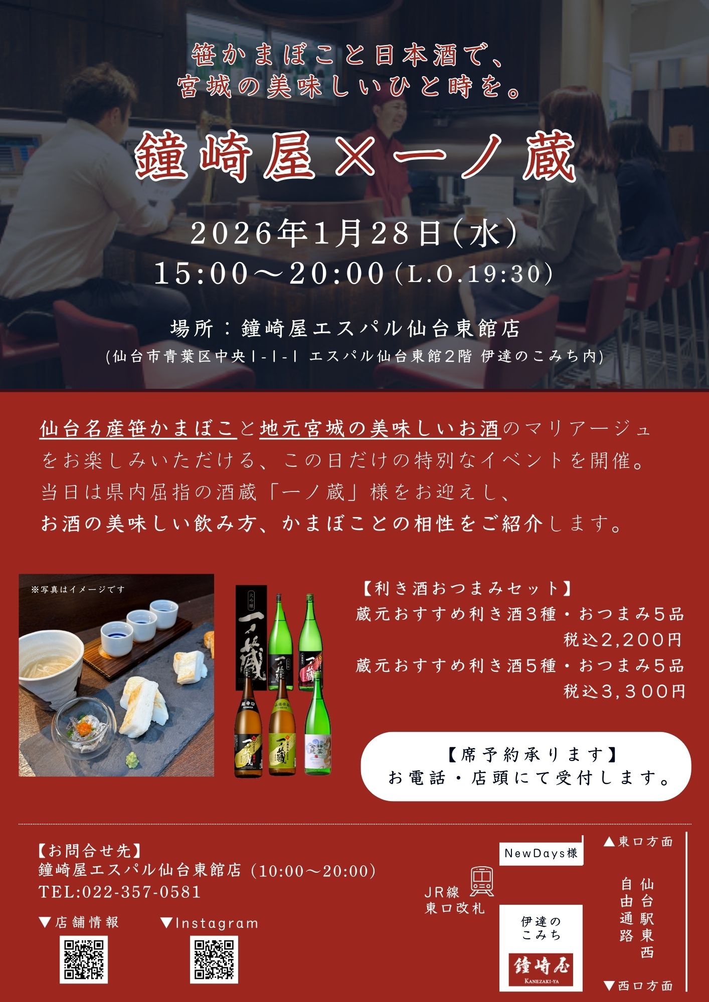 今月末も笹かまぼこと日本酒のコラボイベントを開催します!
